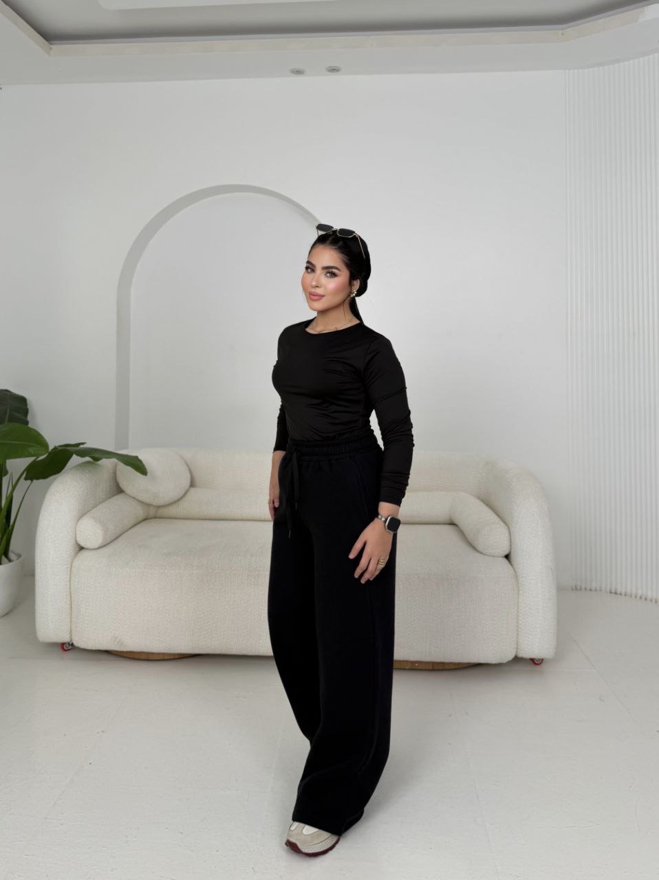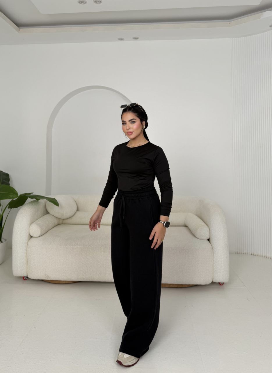 الرجِل نازلة واسعة وبتلم شوية عند الكاحل فبتدي شكل بالون لطيف يخبّي عيوب الأرداف والفخذين، وبيطلع حلو جدًا على السنيكرز أو البوت الطويل.